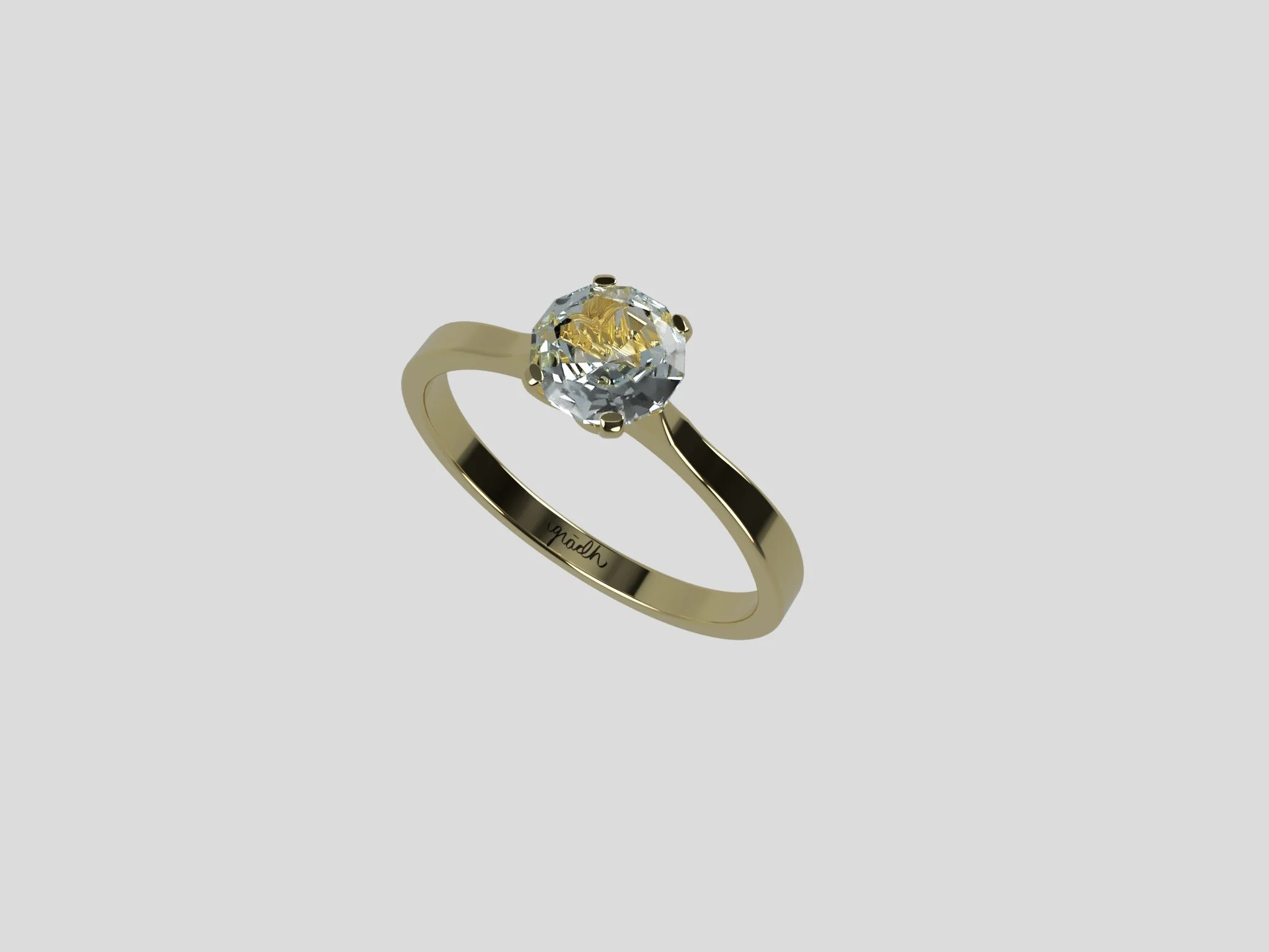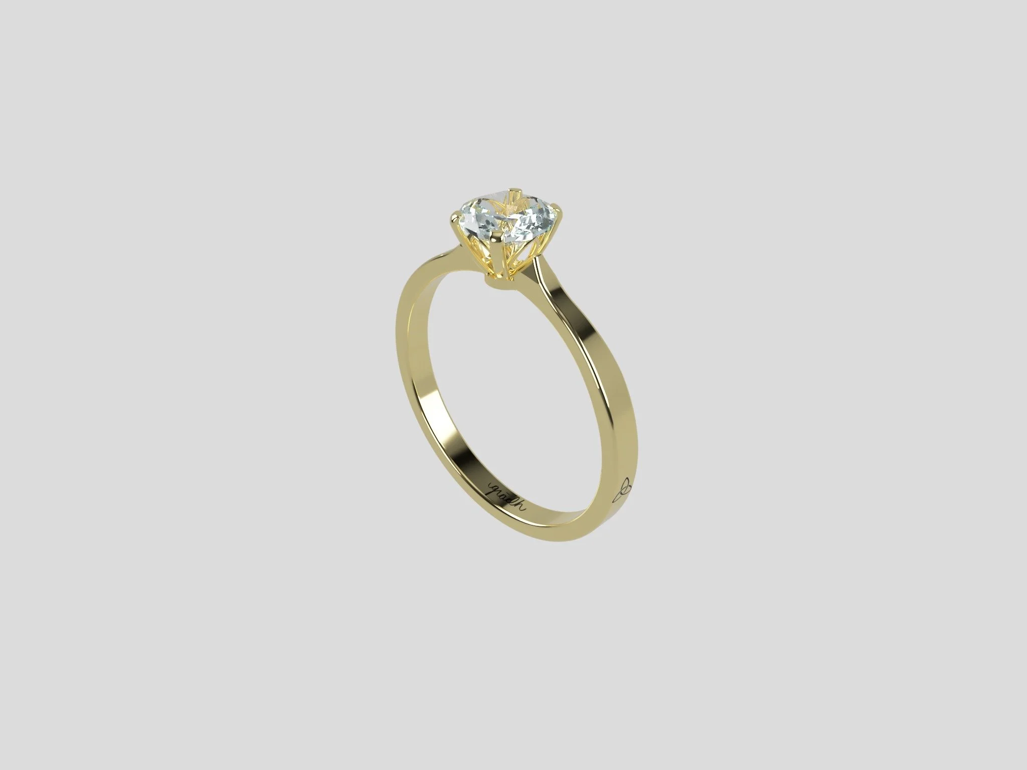 This setting elevates the gem towards heaven as not only a prayer but also an offering and a sacred vow. It evokes the church nave where two people become one in the Holy Sacrament of Marriage.